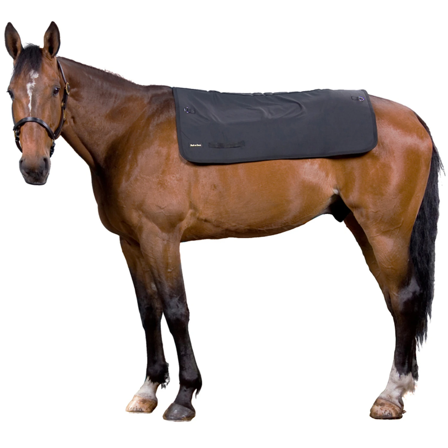 Der Rückenwärmer hat eine dünne Fütterung plus Klettverschlüsse über die gesamte Rückenlänge. Falls Sie eine normale Decke über den Rückenwärmer auflegen möchten, könnten Sie die zusätzlichen abnehmbaren Kletverschlüsse nutzen, um beide Decken miteinander zu verbinden. Dort gibt es Schlaufen für Begurtungen (separat erhältlich), um den Rückenwärmer für kurze Zeit in Position zu halten, wie z. B. bei einem Turnier.