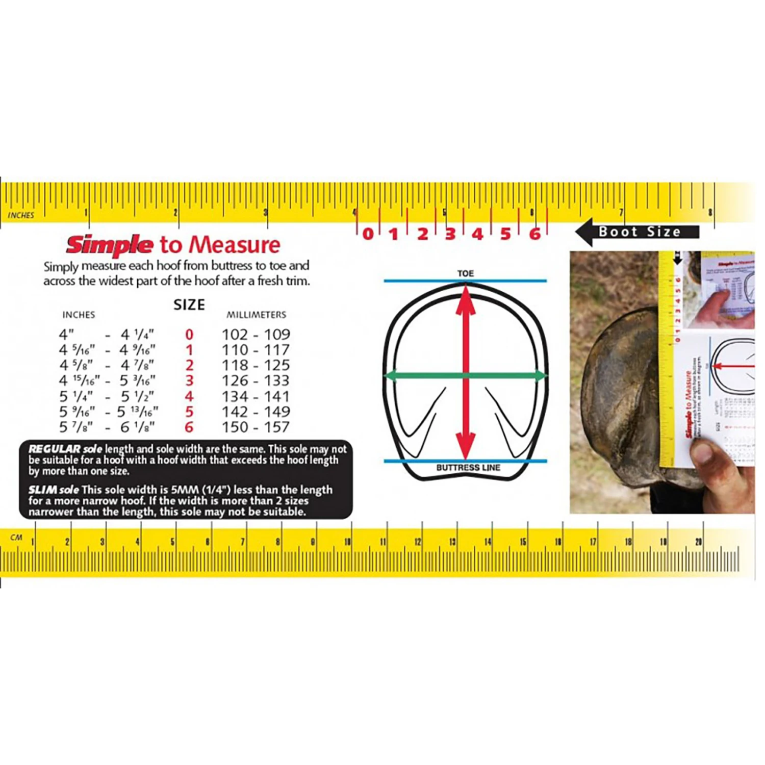 SIMPLE Regular Boot ist ein vielseitiger Hufschuh, exzellent um die Hufe Ihres Pferdes auf hartem, rauen Terrain zu schützen. Der ultimative Schutz für das barhufige Pferd. Großartiger Komfort bei chronischen Schmerzen oder sensiblen Hufen, zur Rehabilitation von Verletzungen, navikuläre Erkrankung, Hufrehe, Blutergüsse und geschädigte Ballen. Können auch als Schutz im Anhänger oder beim Deckakt dienen oder auf dem Wanderrit als „Ersatz-Schuh“ mitgeführt werden. Die feine Wohle passt für einen Huf, der mindestens 1/4″ schmaler als lang ist.