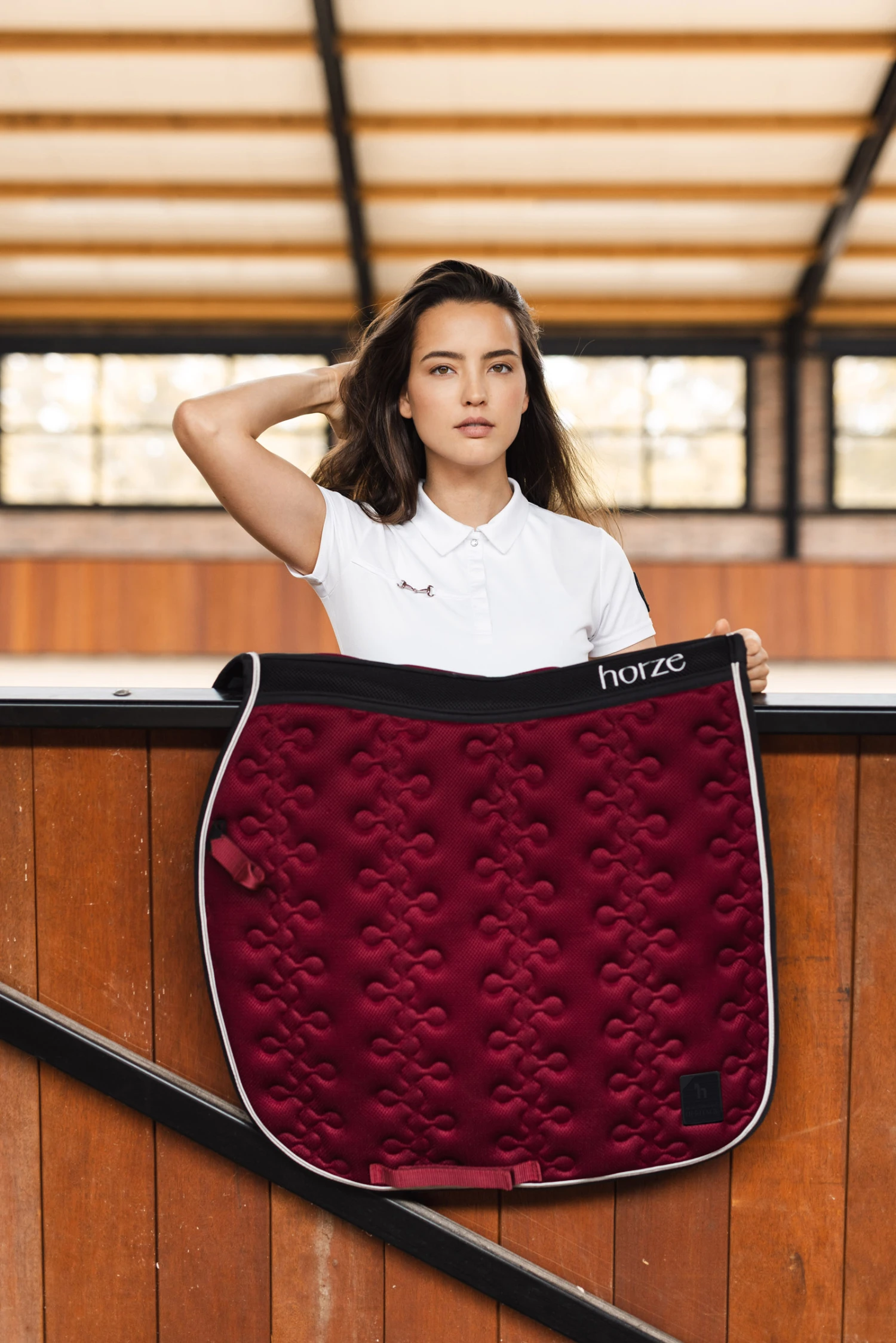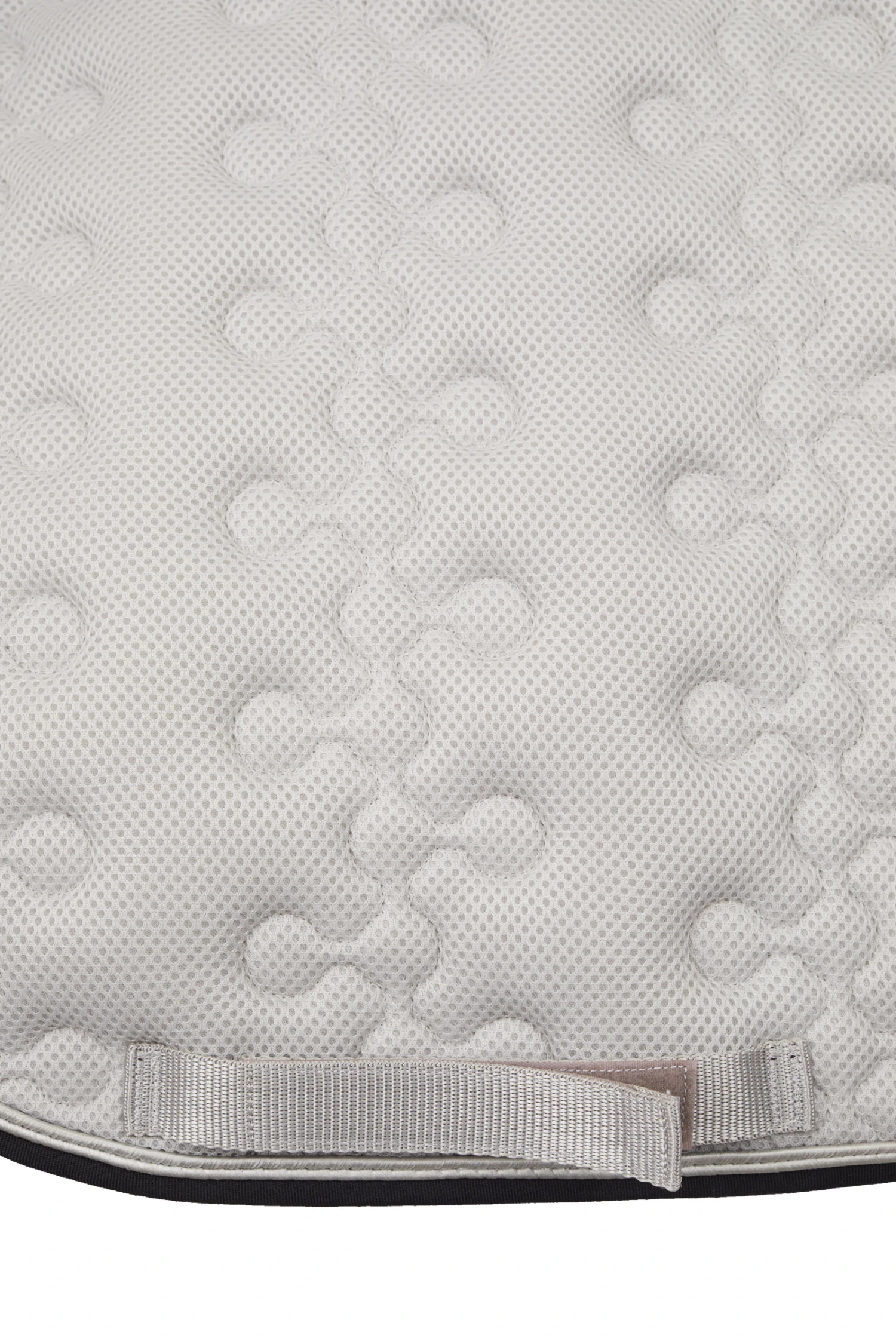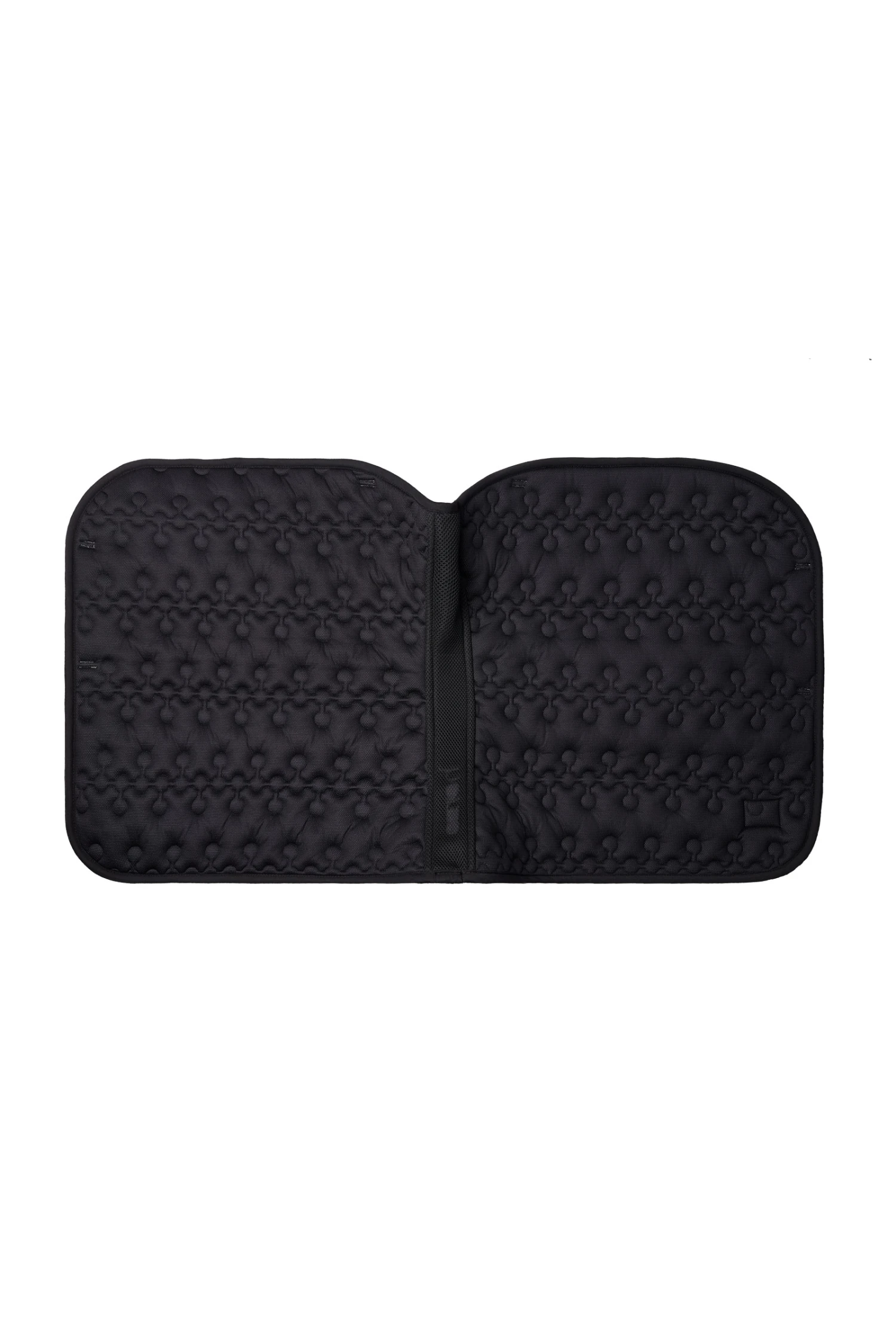 Die Schabracke Smoky Twilight besteht aus einem dicken 3D-Mesh-Gewebe, das für eine bessere Luftzirkulation und Temperaturregulierung sorgt. Das gesteppte Obermaterial sorgt für einen eleganten Look, während das feuchtigkeitsableitende Futter Funktionalität bietet. Abgerundet wird das Design durch eine feine kontrastierende Kordel und ein Branding entlang der Wirbelsäule sowie ein Logoabzeichen.