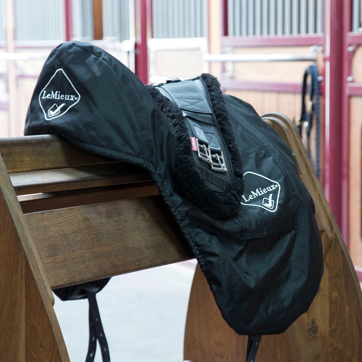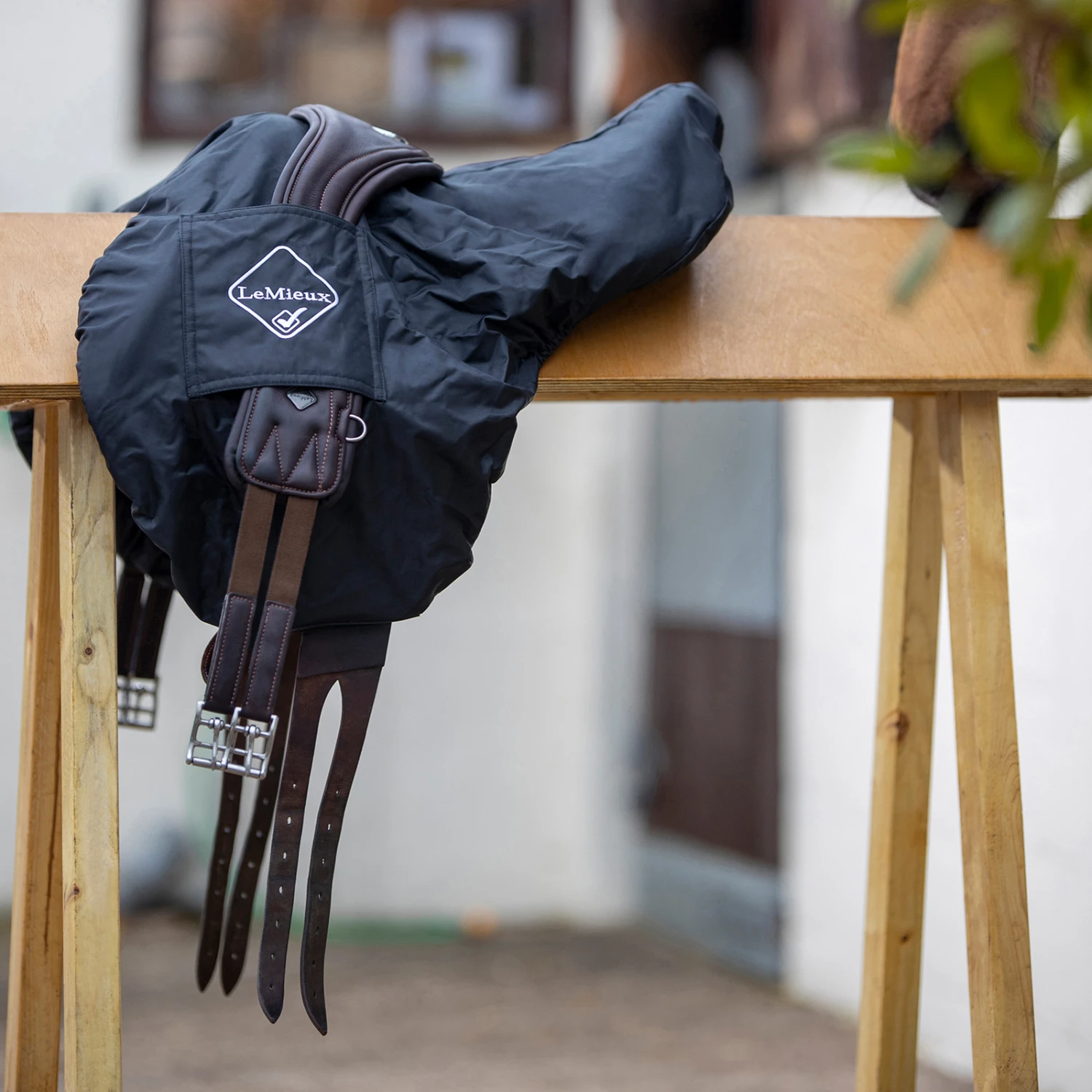 Dank des verstellbaren, elastischen Kordelzugs passt er auf die meisten Formen und Größen von Dressursätteln und bietet einen passgenauen Sitz. Steigbügelschlitze ermöglichen einen einfachen Zugang zum Durchführen der Steigbügel und ein Schlitz an der Unterseite auf jeder Seite dient zum Durchführen der Gurtstrupfen für zusätzliche Stabilität (Mono-Flap-Sättel).
