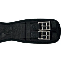 Durch die anatomische Form entsteht kein Druck, sondern optimaler Raum am Brustbein und Ellbogen. Der Gurt ist sehr gut für empfindliche Pferde geeignet. Rollschnallen aus rostfreiem Edelstahl machen das Gurten einfach und der Elastik sorgt für hohen Komfort.